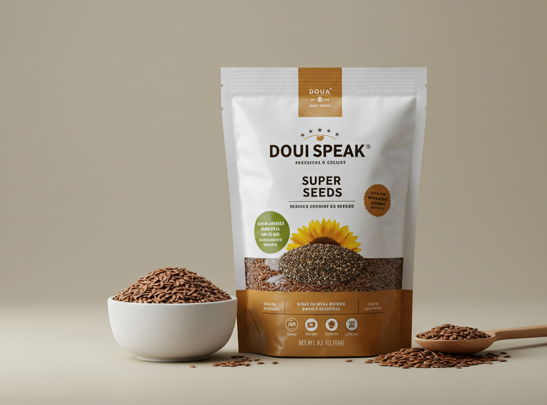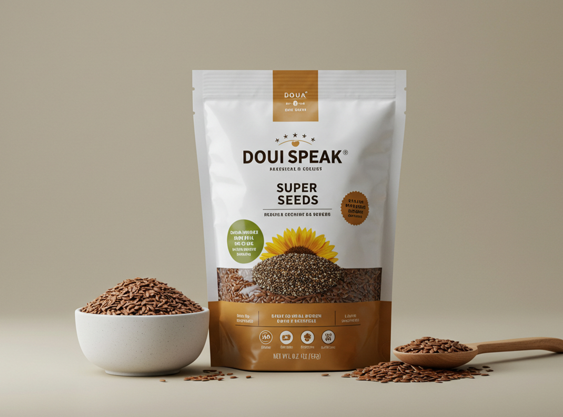 Thanks to their rounded base, Doypack bags stand upright, offering a professional image on shelves, at trade fairs or points of sale.