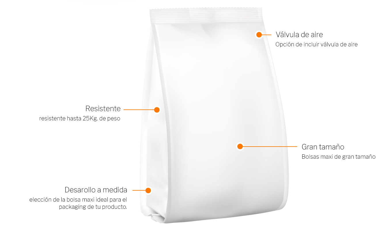 Each Maxibag is designed according to the specific needs of the client: type of content, weight, closing system, format, etc.