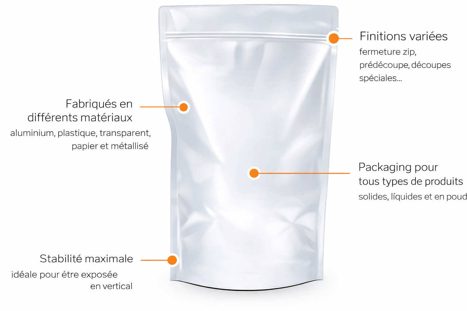 Les sacs Doypack s'adaptent aux besoins de multiples secteurs grâce à leur résistance, leur polyvalence et leur capacité de conservation.
